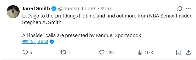 -(226贊)讓我們接通DraftKings熱線(xiàn),從NBA資深內幕人士斯蒂芬·A·史密斯那里了解更多內幕消息