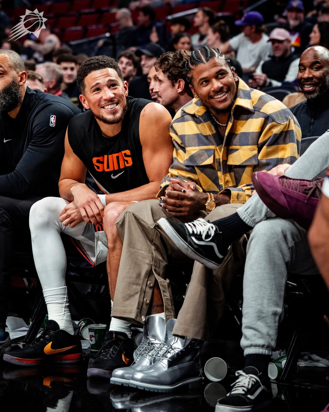 [流言板]波特蘭之夜完美收官!太陽(yáng)官方社媒曬布克和格林替補席合影