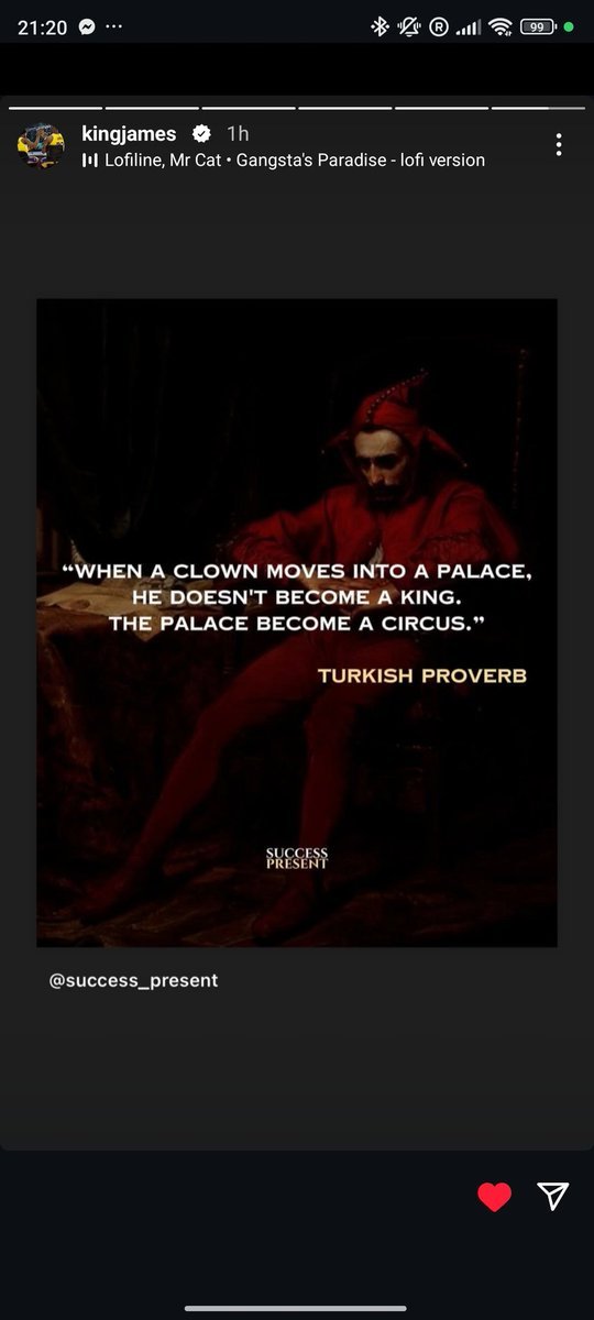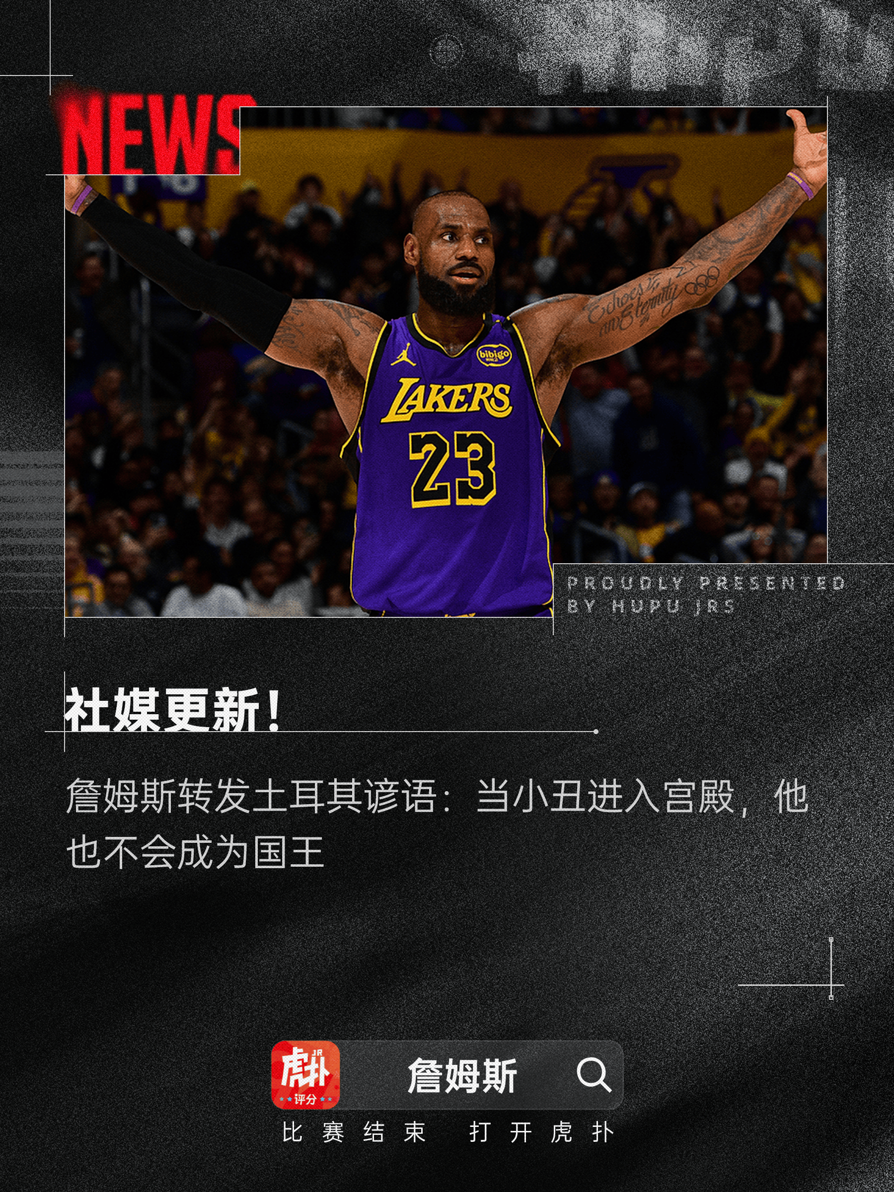[流言板]詹姆斯轉發(fā)土耳其諺語(yǔ):當小丑進(jìn)入宮殿,板詹他也不會(huì )成為國王由虎撲籃球資訊 發(fā)表在籃球資訊 https://bbs.hupu.com/502