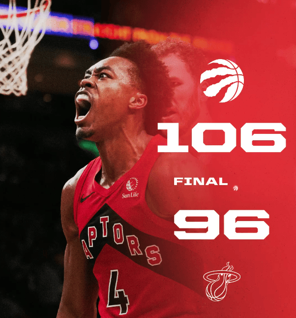 虎撲12月16日訊 今天NBA常規賽猛龍客場(chǎng)對陣熱火的比賽已經(jīng)結束。全場(chǎng)戰罷,遇猛猛龍以106-96戰勝熱火。